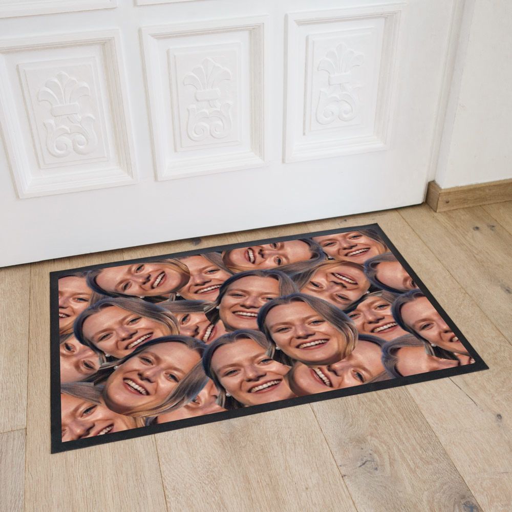 Si jamais c’est votre visage que vous souhaitez voir sur le paillasson devant votre porte, n’oubliez pas que les gens s’essuieront leurs pieds dessus ! Et pas qu’une fois ! Ce paillasson personnalisé avec visage multiplie votre visage (ou un autre) pour mettre encore plus en valeur ce portrait déjà magnifique, nous n’en doutons pas. Le résultat : situé entre amusant et spectaculaire (bref, le cadeau idéal) et qui laisse également espérer que vu le nombre de visages, au moins un restera épargné par la saleté des semelles… En tout cas, ce paillasson fera sensation.